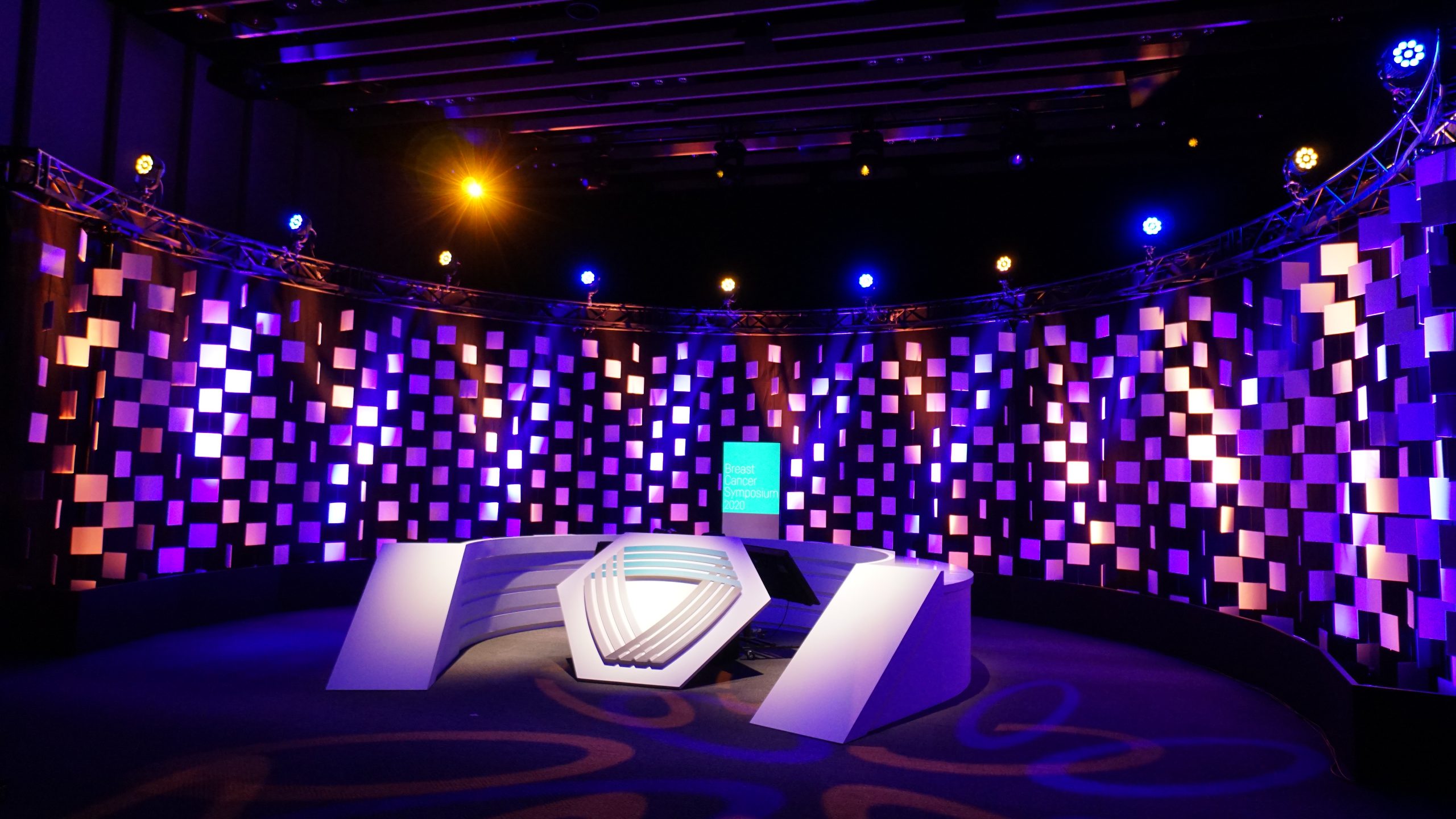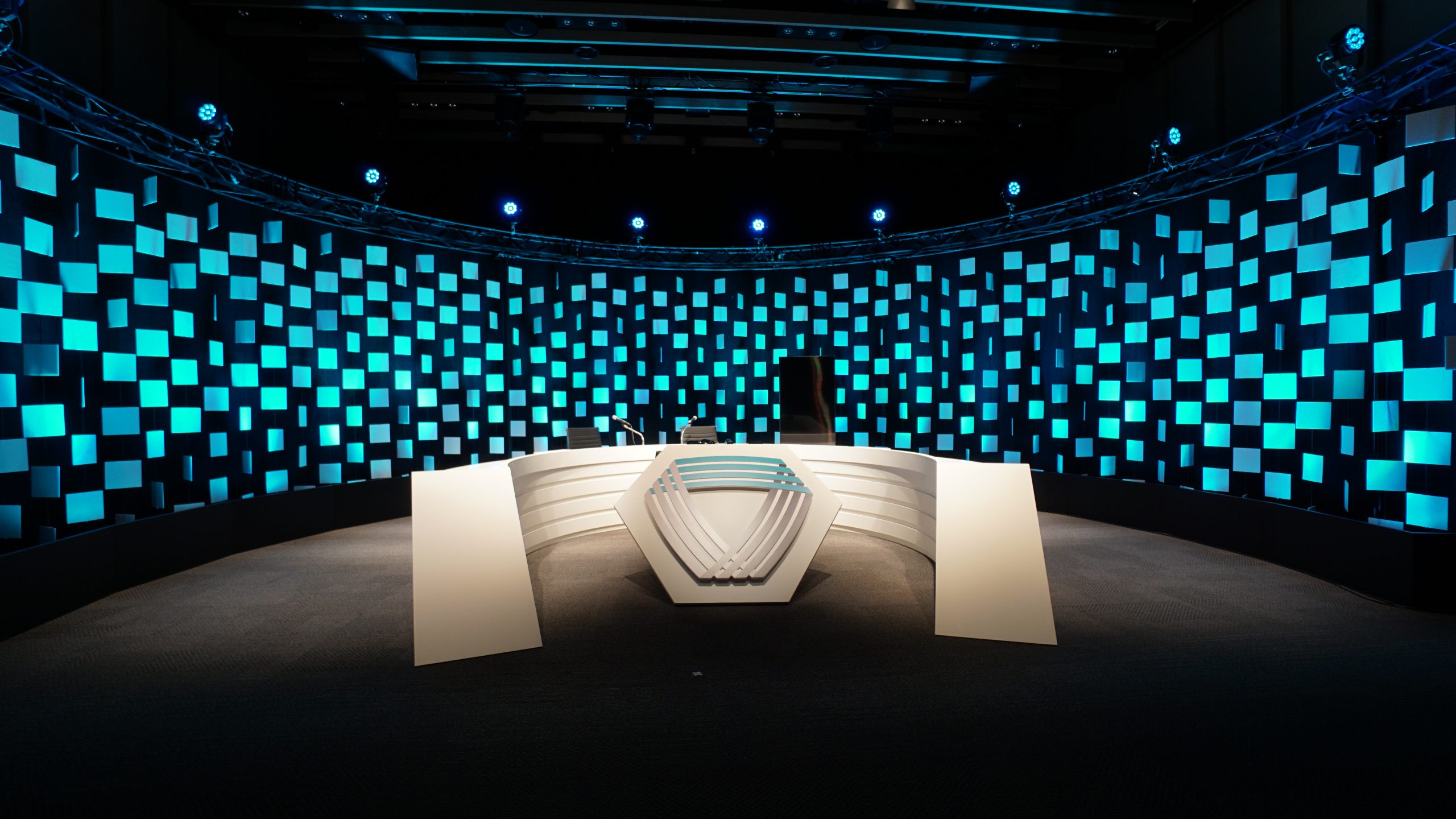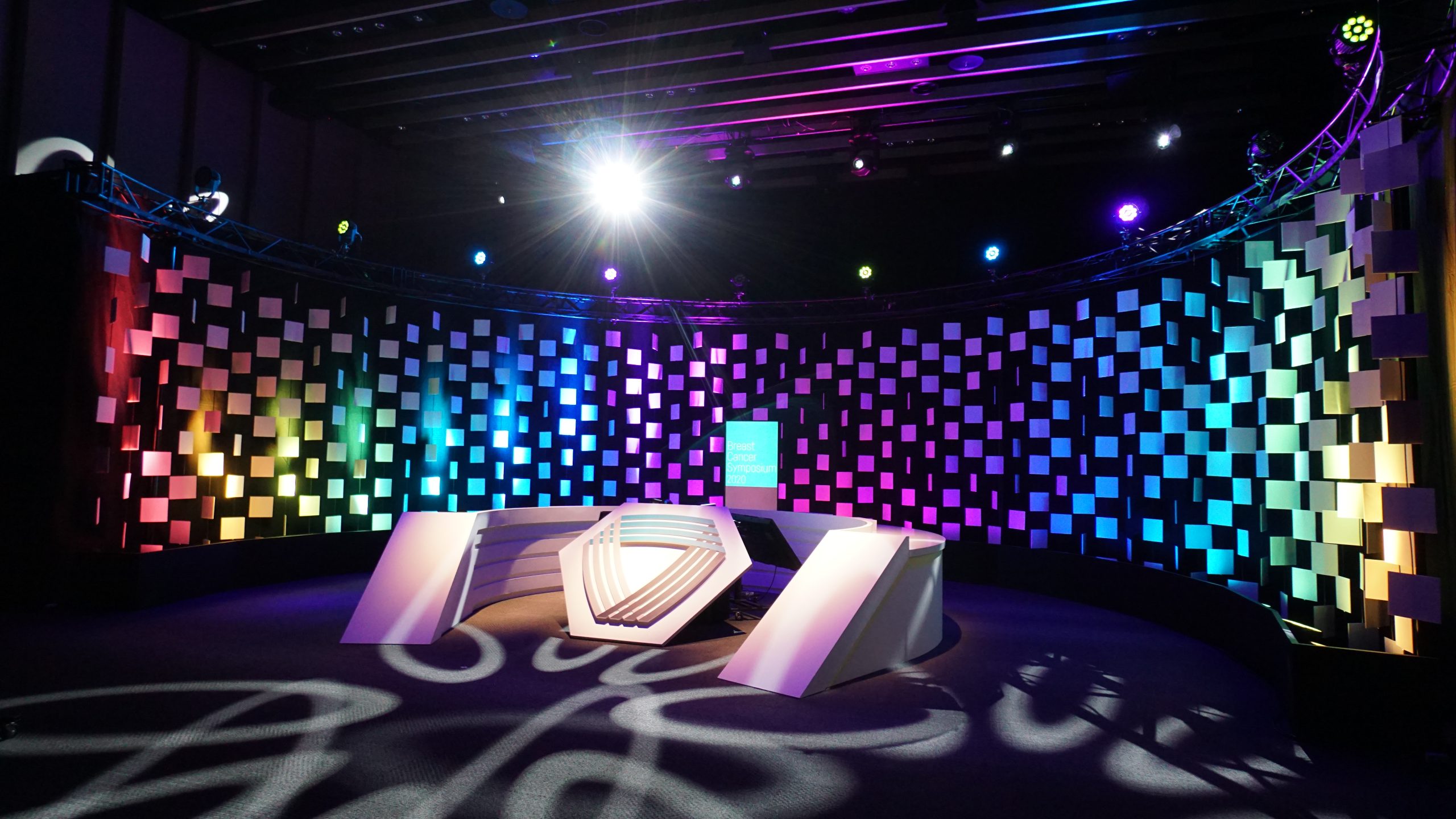 EXHIBITION/STAGE Online Seminar Stage Set Online Seminar Stage Set Location : Tokyo Japan Design : MALOOÉ Tomoaki Ozaki 300角に切ったスチレンボードを簾のように幾重にも吊っていきステージの構成要素とした。これは様々なシーンに合わせて様々な表情を変える舞台装置の役割にもなる。ニュース番組形式のようなラウンドするカウンターで出演者たちが議論を交わす。 all works