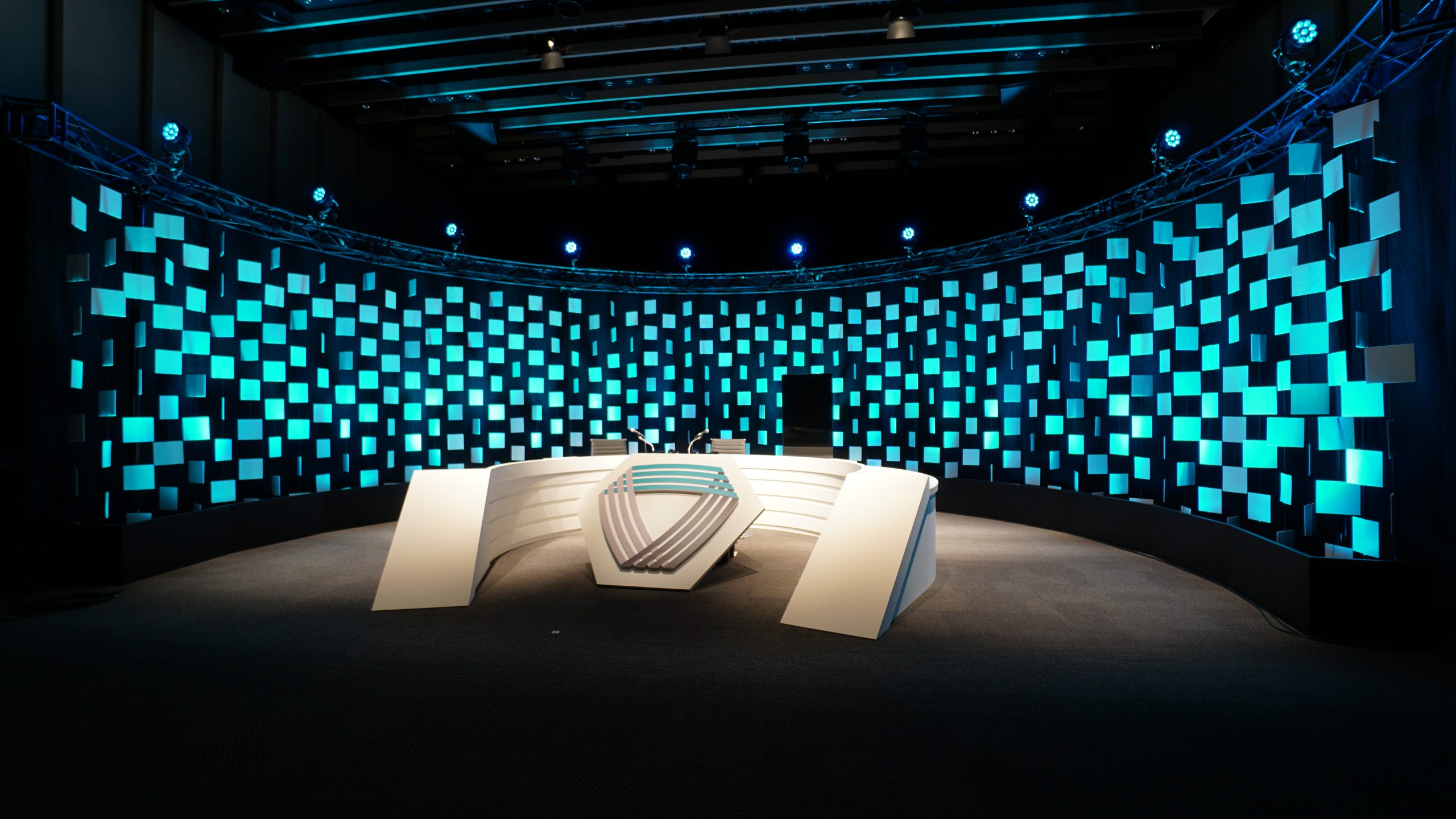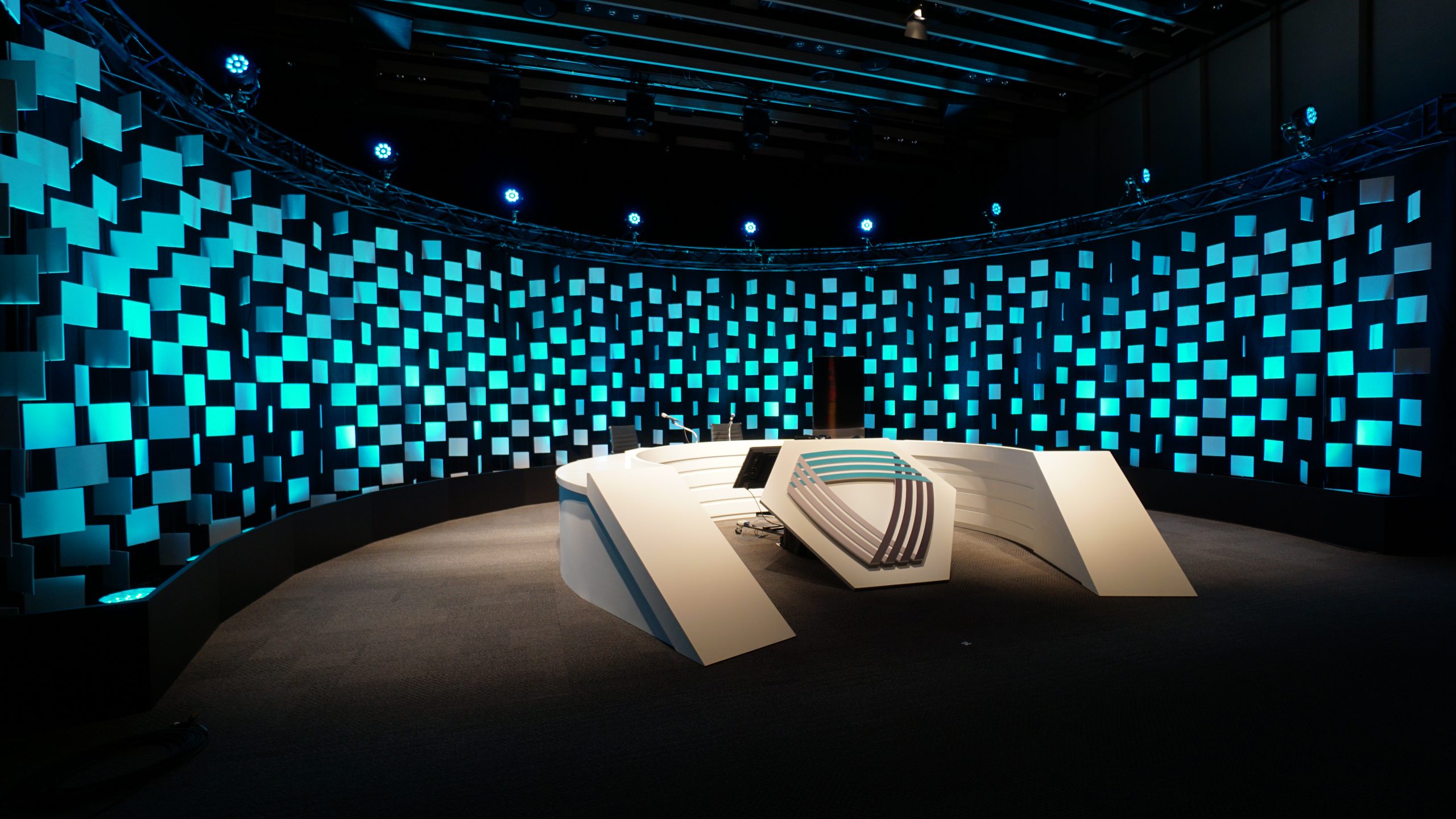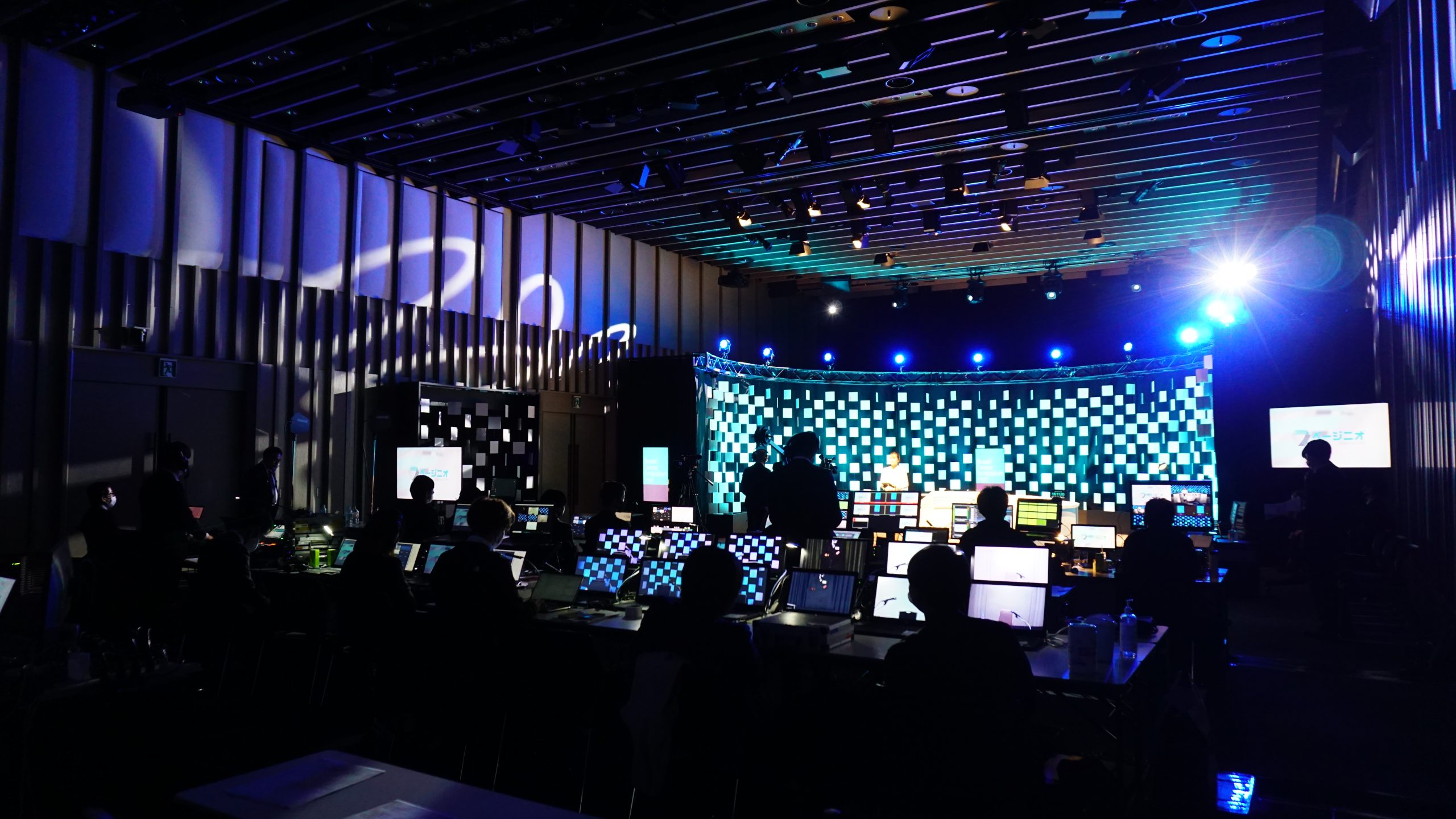 EXHIBITION/STAGE Online Seminar Stage Set Online Seminar Stage Set Location : Tokyo Japan Design : MALOOÉ Tomoaki Ozaki 300角に切ったスチレンボードを簾のように幾重にも吊っていきステージの構成要素とした。これは様々なシーンに合わせて様々な表情を変える舞台装置の役割にもなる。ニュース番組形式のようなラウンドするカウンターで出演者たちが議論を交わす。 all works