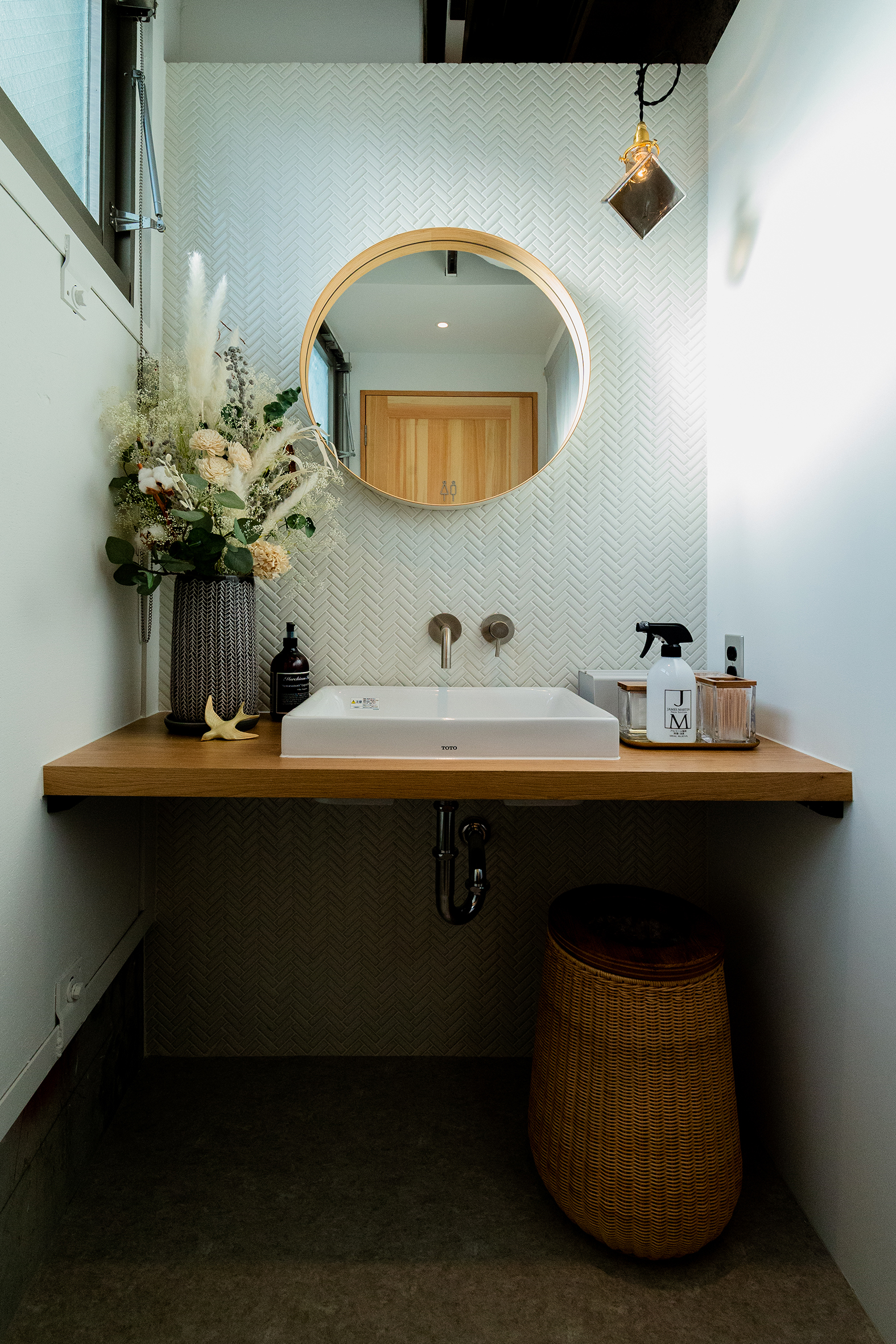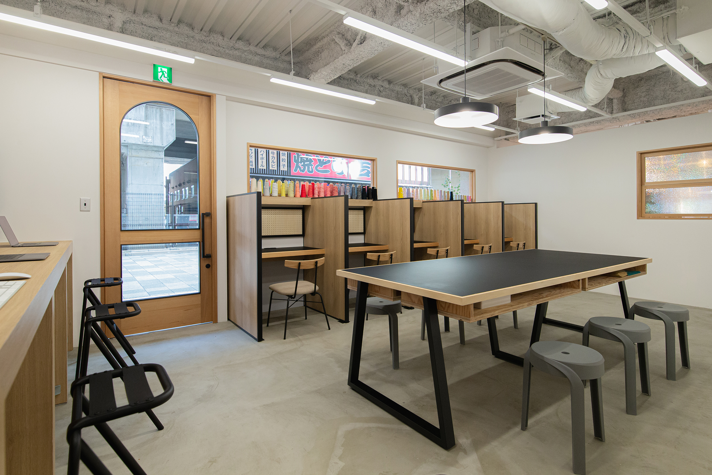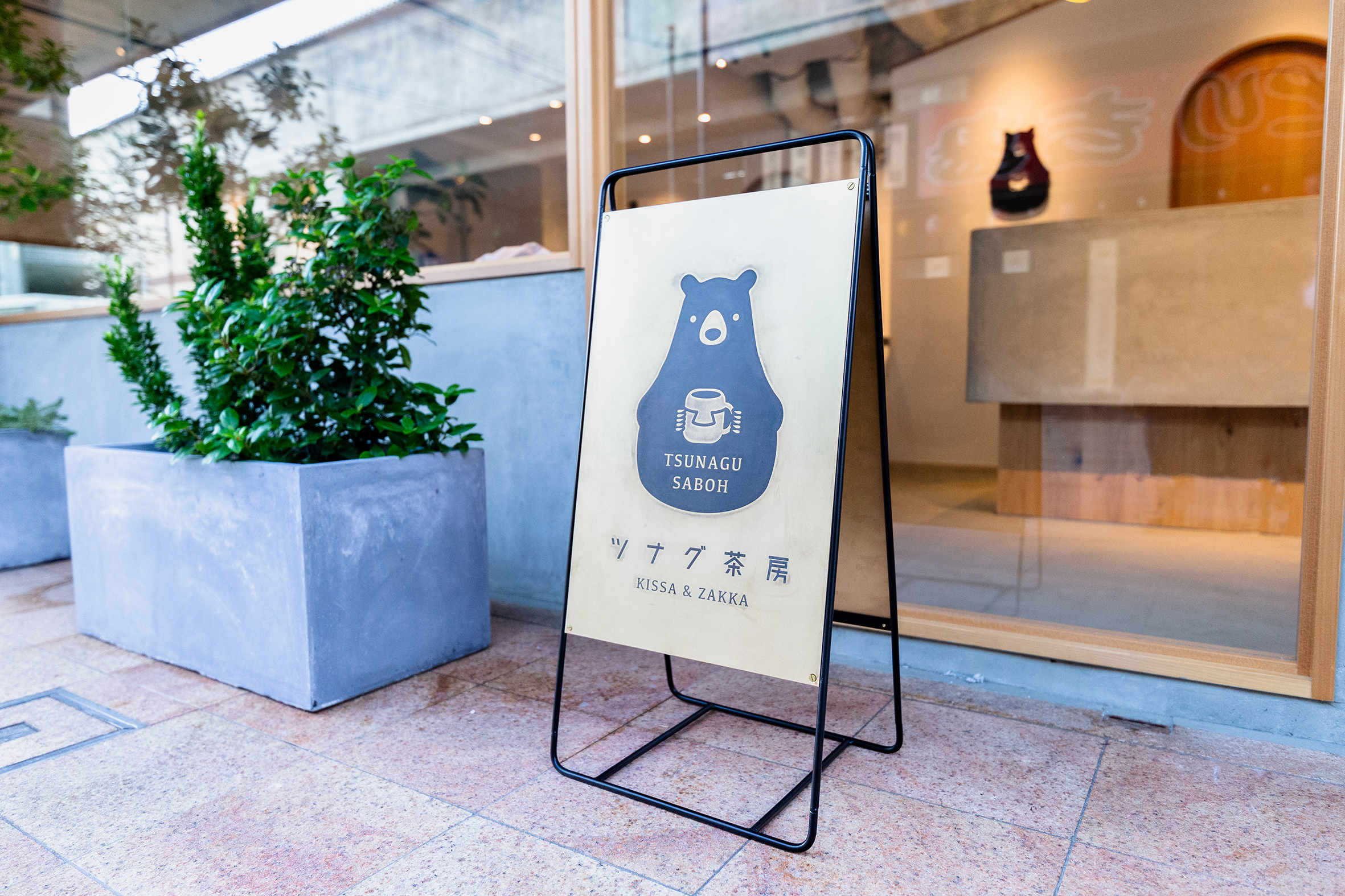 大阪・東大阪市にオープンした就労支援を事業展開する株式会社TUNAGUが運営するカフェと作業場のデザイン。様々な事情を抱えた方たちが同じ目線で集える場所として家をモチーフに、モルタルと木、鉄を使用し、スタイリッシュでありながら温かみを感じる空間を目指した。それは福祉業界のイメージを払拭するための施策でもある。黒いクマのキャラクター「サボウくん」が人気を博し、ツナグ茶房は連日多くの人で賑わっている。